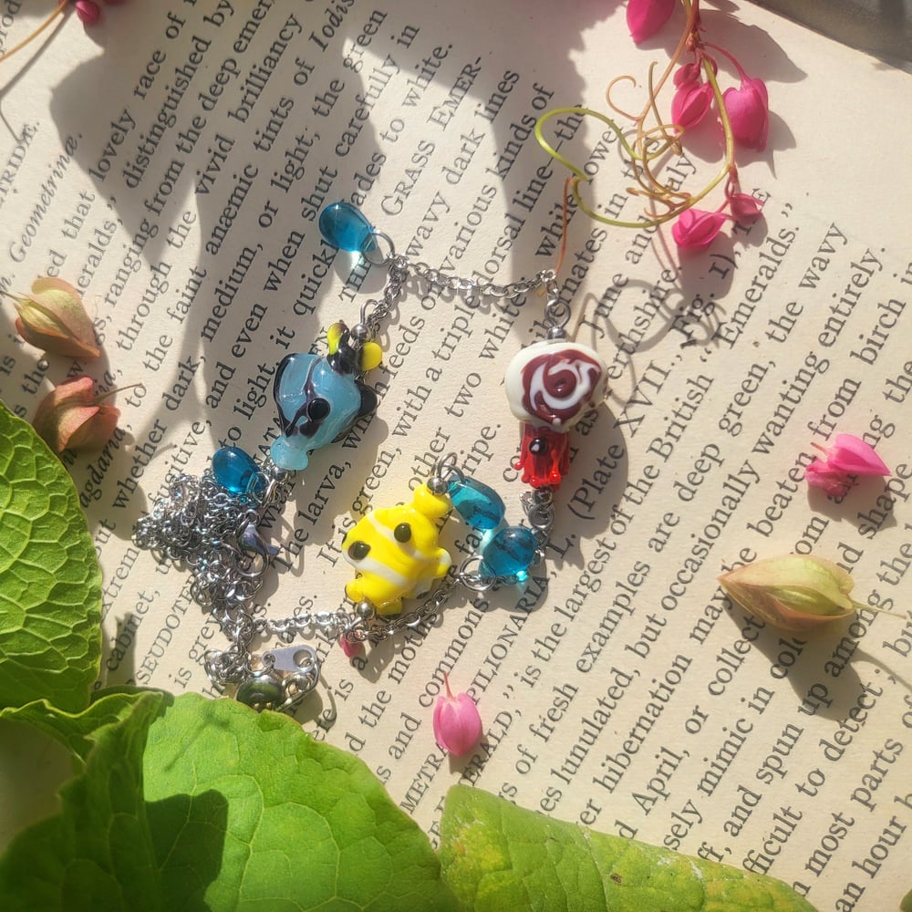 Lovingly handmade glass lampwork beads. Lampwork by hand locally in Meanjin. Annealed at the Creative Glass Guild of QLD and hand-assembled lovingly using high-quality findings.