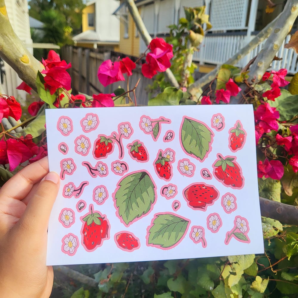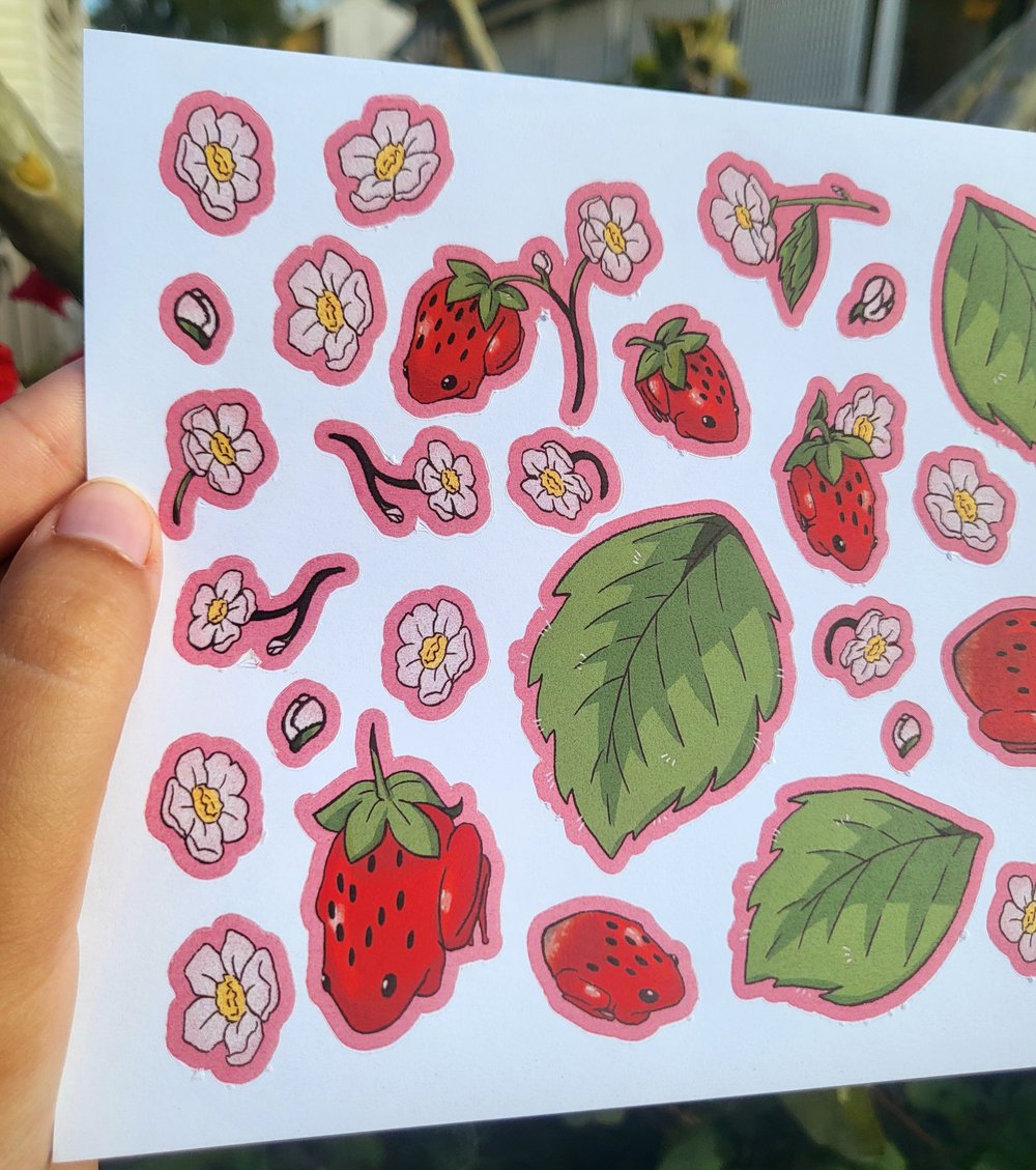 Paper stickers for diaries, notebooks, scrapbooks, calenders, etc! Based on my Strawberry Frogs design (which is also a print on my site)!